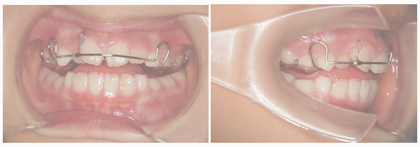 第Ⅰ期治療で取り外しの装置(床矯正装置を就寝時のみ使用)を用いて前歯を並べ、顎の骨の成長を正しい軌道にのせました。